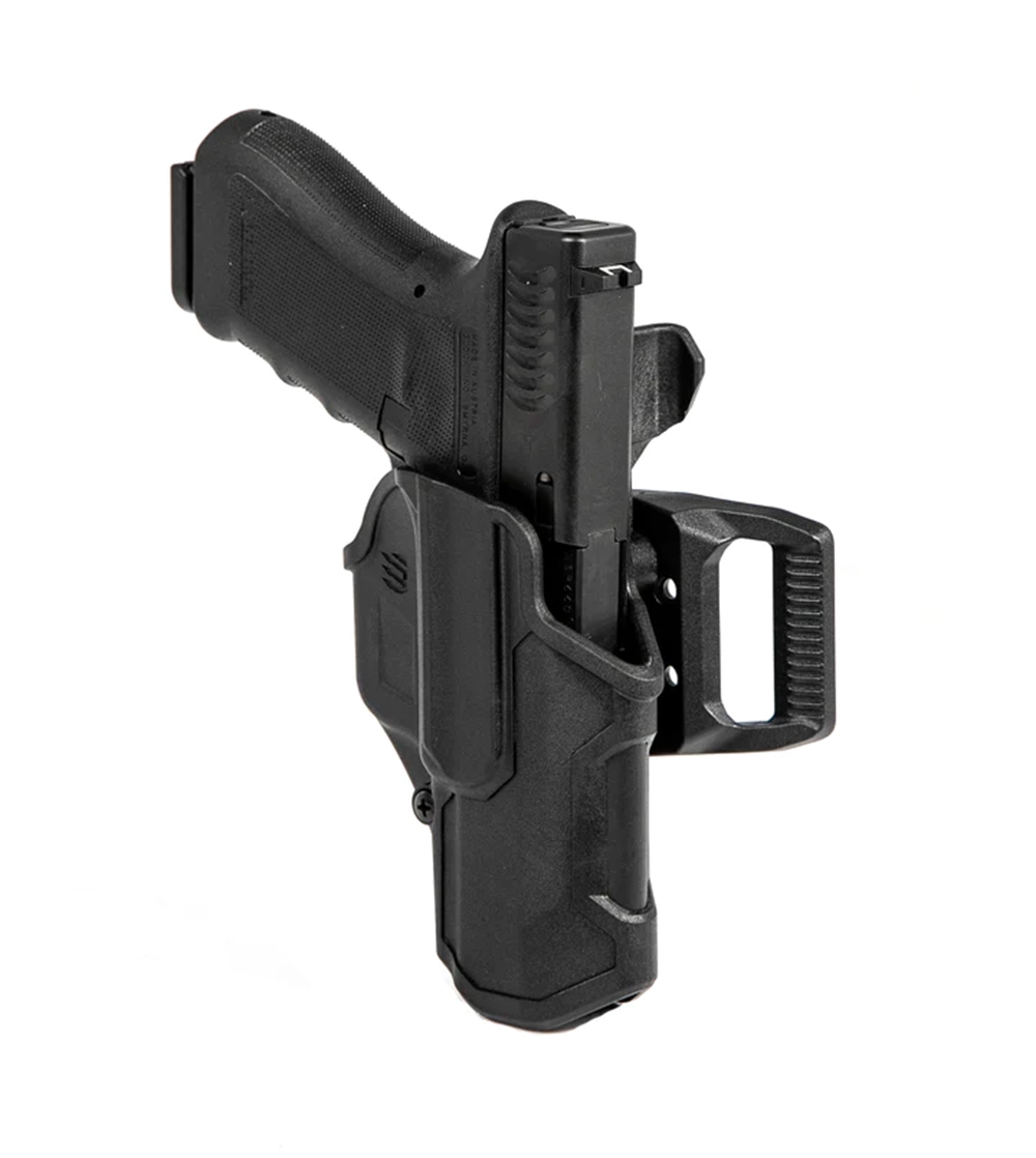 La série T utilise à la fois une fixation passive réglable et une fixation contrôlée par le pouce pour vous offrir à la fois rapidité et sécurité. Il suffit de créer une poignée sur votre pistolet et la position naturelle du pouce désactive la gâchette, ce qui permet un tir fluide et rapide. Une sécurité supplémentaire est assurée par les dispositifs de protection de la libération du pouce et la proximité du corps de l'utilisateur.
