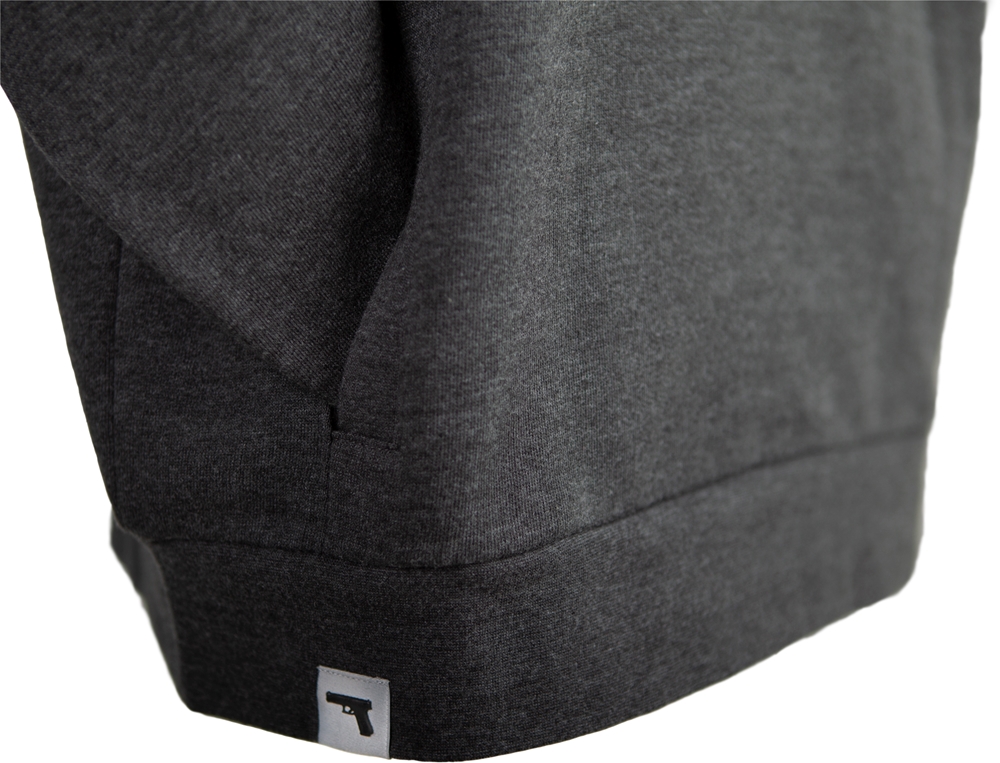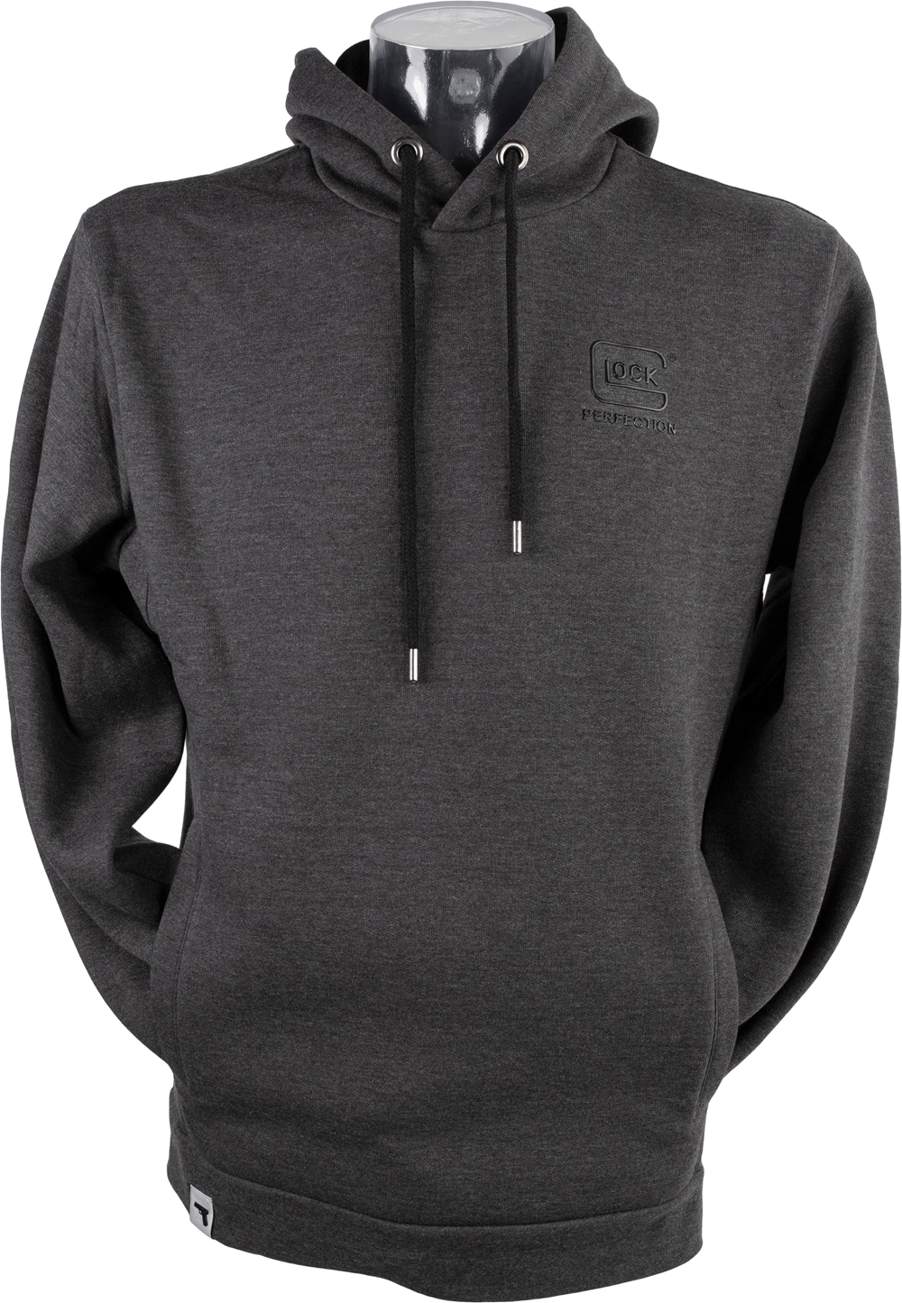 Ce Sweat Hoddie Glock à manches longues en gris chiné a les caractéristiques suivantes :