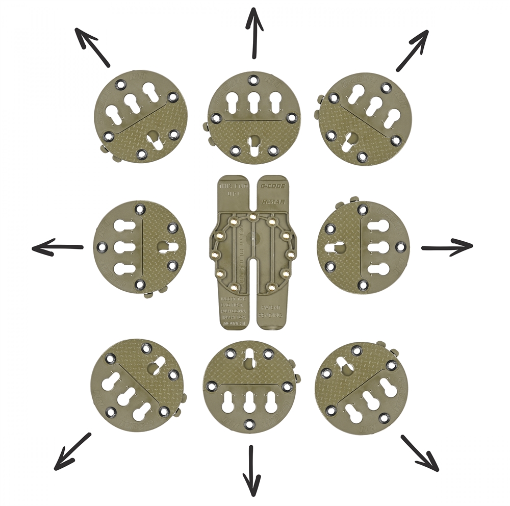 RTI H-MAR (MOLLE-Adapter RTI) arbeitet mit jedem RTI G-Code Kydex Holster / Ambidextrous.