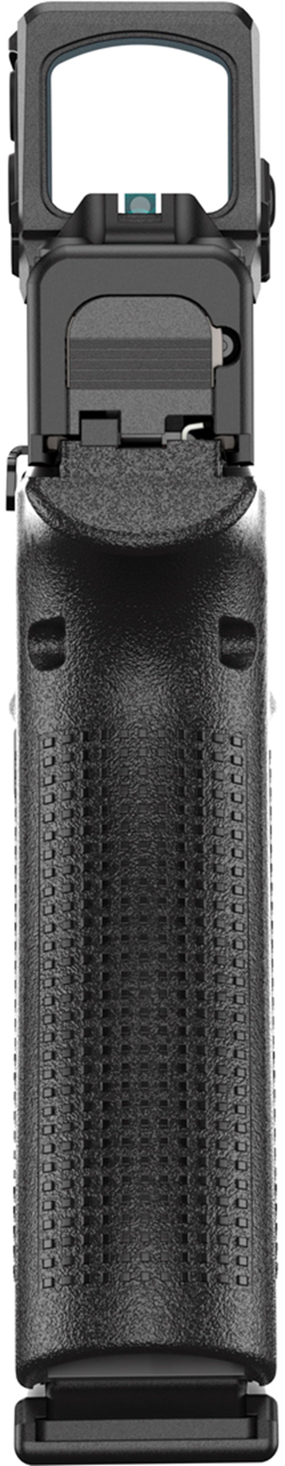 Der Rahmen verfügt über die GLOCK Slim Montageschiene zur Befestigung von taktischem Zubehör und enthält Elemente der Slimline-Serie wie den kurzen Abzugsweg, einen Rahmen mit integriertem Beavertail, einen umkehrbaren Magazinverschluss und das unglaublich präzise und match-grade GLOCK Marksman Barrel (GMB) aus der Gen5-Serie. Das G48 Rail verfügt ausserdem über präzise gefräste Kerben an der Vorderseite.