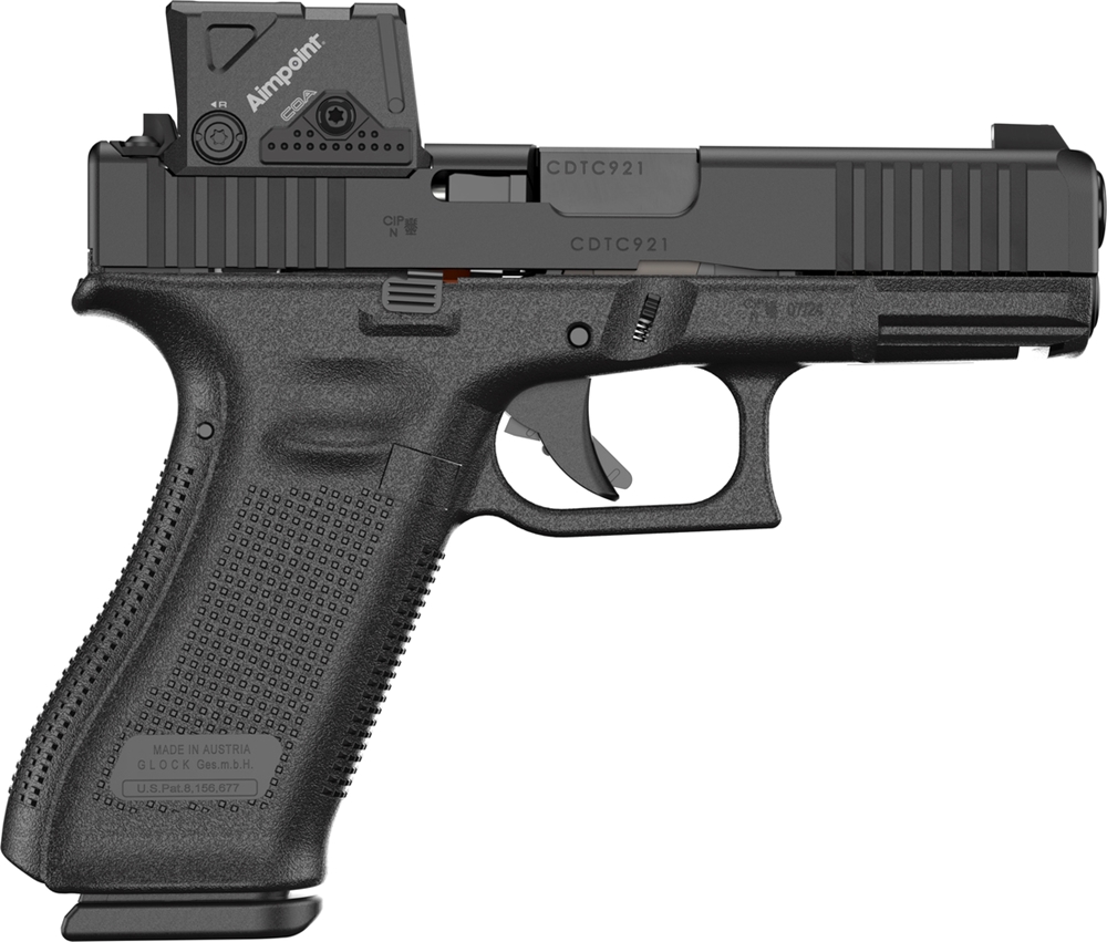 Die kompakte Crossover-Pistole G45 MOS COA in 9x19mm kombiniert einen kompakten Schlitten mit einem vollwerti GenRahmen und verfügt über alle Vorteile eines Gen5-Modells.