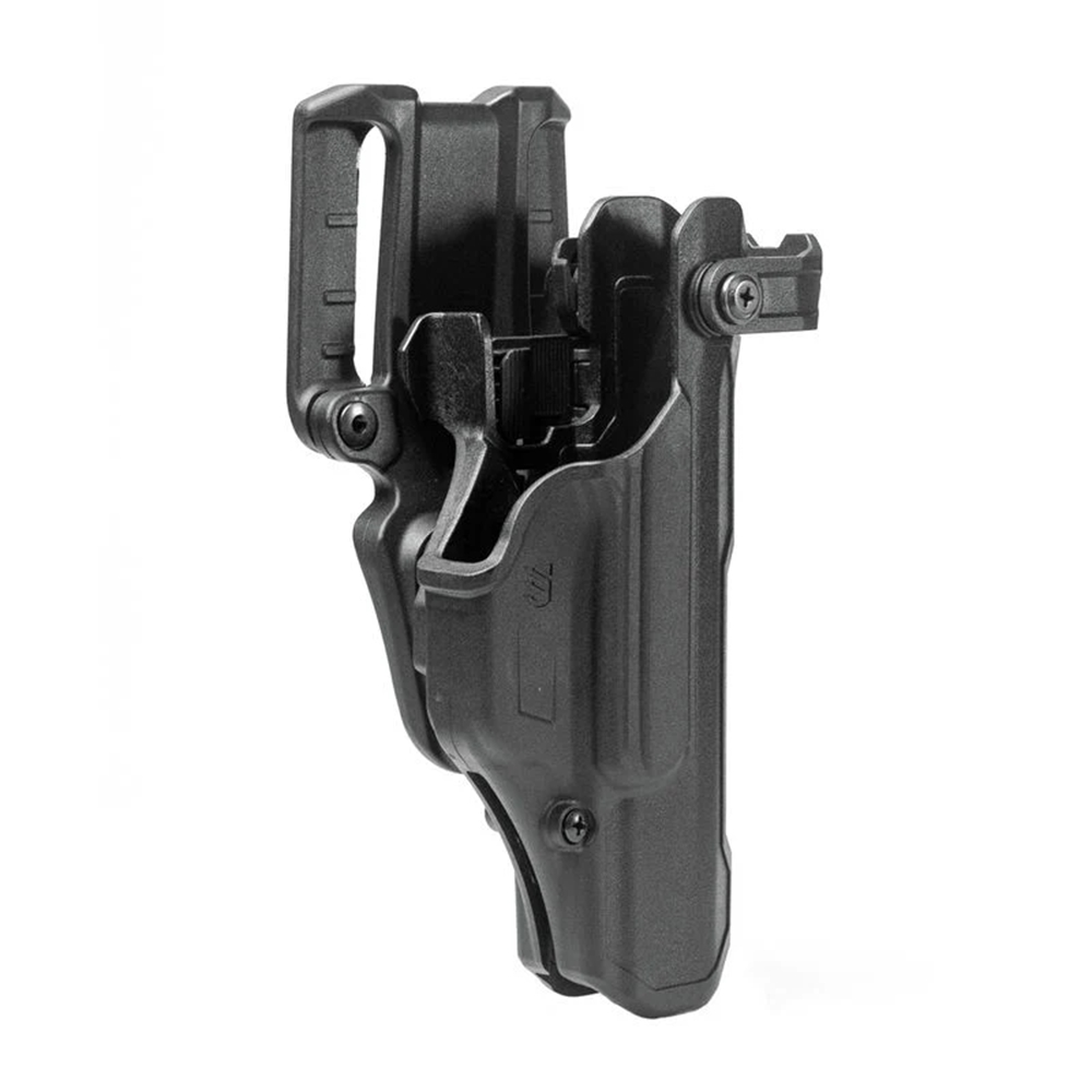 Mit ihrer stromlinienförmigen, daumenbetätigten Halterung hält die T-Series L3D Ihre Waffe stets griffbereit und sorgt gleichzeitig für absolute Sicherheit. Dank einer Ziehbewegung, die nach dem Master Grip-Prinzip funktioniert, können Sie selbst unter den stressigsten Umständen in den Kampf eingreifen. Eine Kombination aus verstärktem Aussenpolymer und glattem, schalldämpfendem, hydrophobem Futter sorgt dafür, dass Ihre T-Serie bei allen Elementen und in jeder Situation funktioniert. Als zusätzliche Sicherheitsmassnahme verfügt die L3D über einen Riemen auf der Rückseite der Waffe. Inklusive Gürtelschlaufe mit Jackenschlitz, die am Holster befestigt wird. Quick Dual Release (QDR) Belt Loop und 2-Slot Belt Loop sind separat erhältlich.