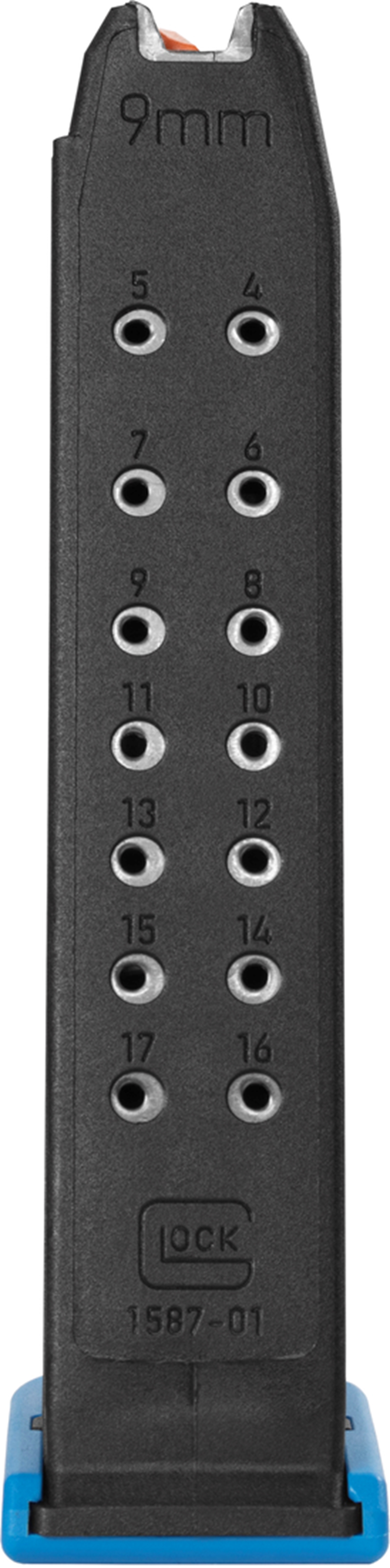 Magazin Glock 17/45 Gen5, Bod. blau, Zubr. orange 9x19