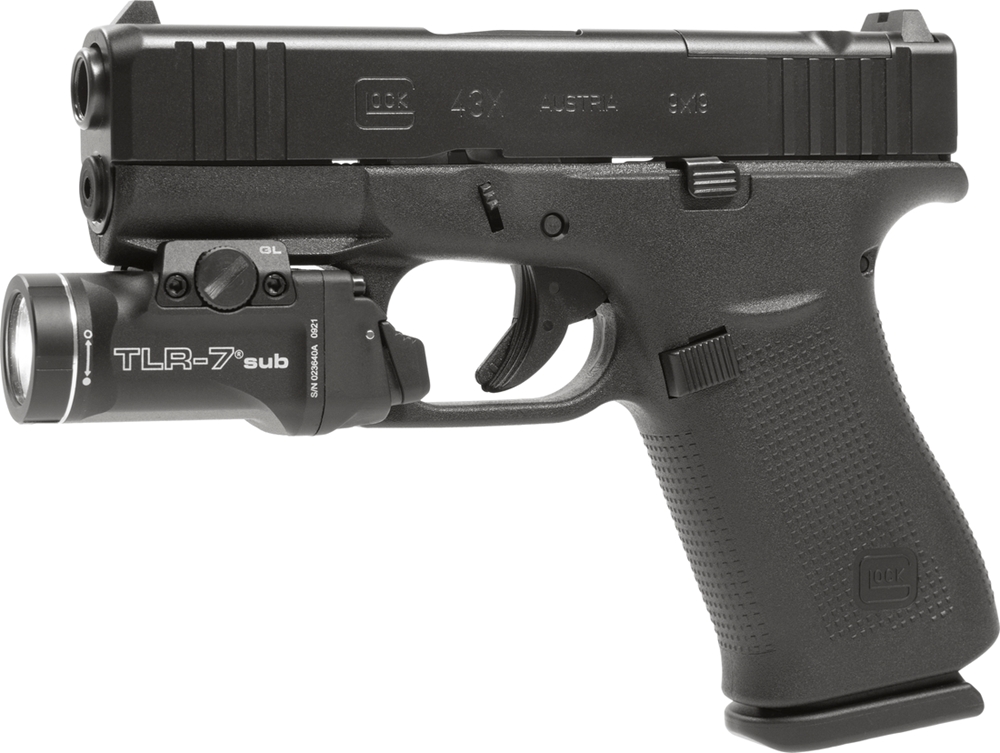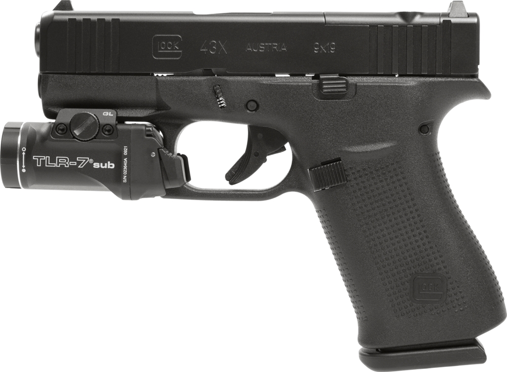 G43X - Le nouveau pistolet slimline GLOCK sub-compact en configuration MOS Le G43X MOS est disponible en combinaison avec un Streamlight TLR-7® Sub. Le nouveau modèle slimline G43X MOS combine deux caractéristiques GLOCK bien connues. En combinaison avec le Streamlight TLR-7® Sub, le design élancé et le système optique modulaire font de ce pistolet le partenaire tactique parfait.