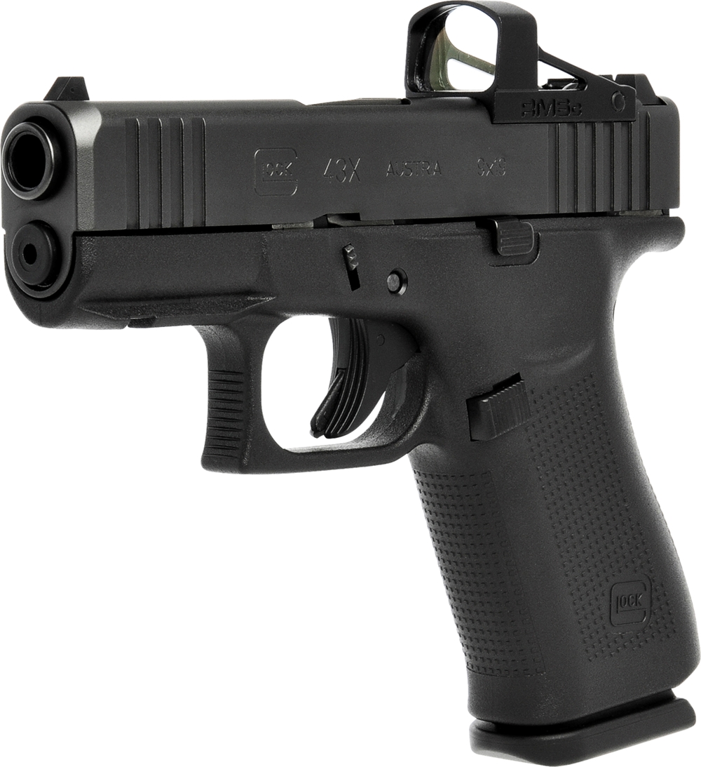 G43X - Le nouveau pistolet GLOCK Slimline sous-compact en configuration MOS avec viseur à point rouge RMScLe G43X MOS est disponible en pack combiné avec un viseur à point rouge Shield. Le nouveau modèle Slimline G43X MOS combine deux caractéristiques bien connues de GLOCK : son design élancé et son système optique modulaire font de ce pistolet le partenaire tactique idéal.