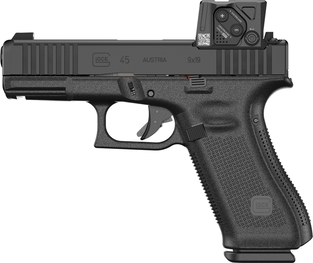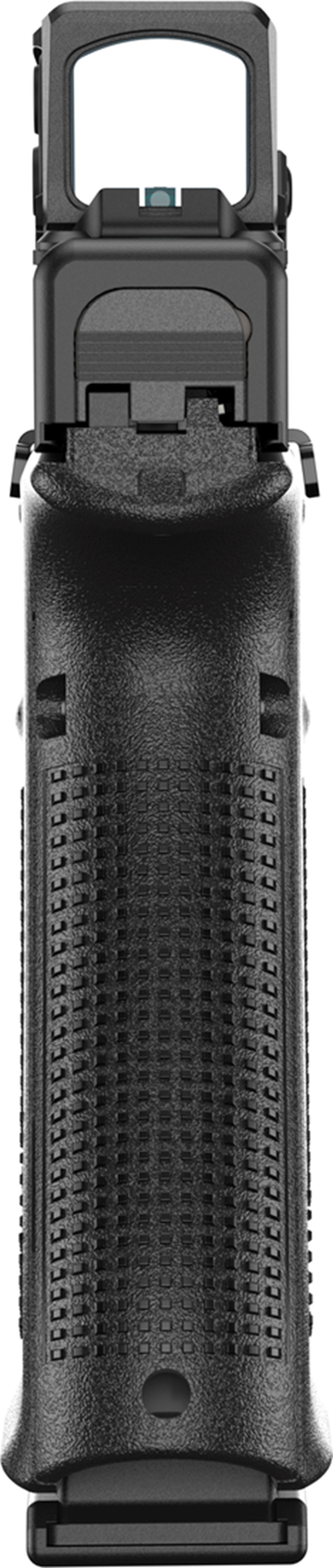 Le pistolet crossover compact G45 MOS COA en 9x19mm combine une glissière compacte avec une monture complète et dispose de tous les avantages d'un modèle Gen5. La glissière en configuration MOS permet de monter facilement un viseur réflecteur miniature sur la glissière du pistolet, sans avoir besoin d'une nouvelle glissière ou d'un système de montage séparé. La glissière utilise le design et la technologie développés par GLOCK pour son pistolet militaire (G19X), combinés aux spécifications des opérateurs et des forces de l'ordre du monde entier. À cela s'ajoute une visée point rouge d'Aimpoint, le COA. La glissière est dotée du revêtement de surface supérieur GLOCK nDLC éprouvé, en noir non réfléchissant. Elle est dotée d'une denture frontale (FS) qui offre une surface tactile supplémentaire lors de la manipulation de la glissière et permet à l'opérateur d'avoir une bonne traction même avec des mains mouillées ou en sueur. La carcasse est également d'un noir discret et dispose d'un logement de chargeur élargi pour un rechargement rapide dans les situations critiques. D'autres caractéristiques sont la détente plus douce, la texture améliorée pour un maniement sûr, une fermeture de chargeur réversible, un levier d'arrêt de glissière utilisable des deux mains, le Modular Beavertail Backstrap System (MBS) pour un réglage individuel et le GLOCK Marksman Barrel (GMB) incroyablement précis et fiable. Avec le G45 MOS COA, GLOCK a atteint le prochain niveau de performance pour les pistolets de service - testé, éprouvé et inégalé par tous les autres.