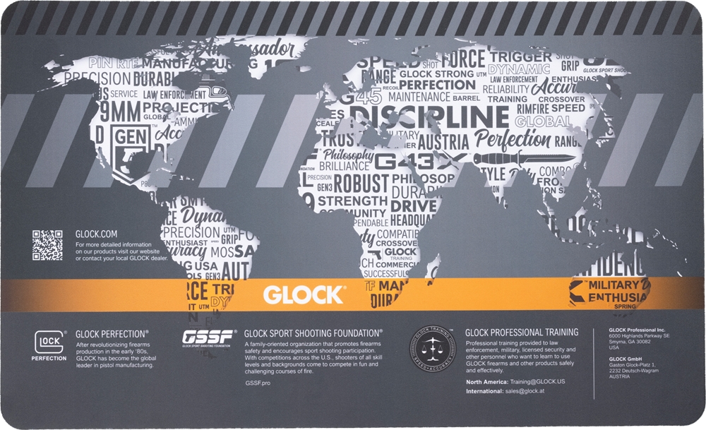 Tapis de démontage de la marque Glock. Avec impression Glock sur toute la surface.