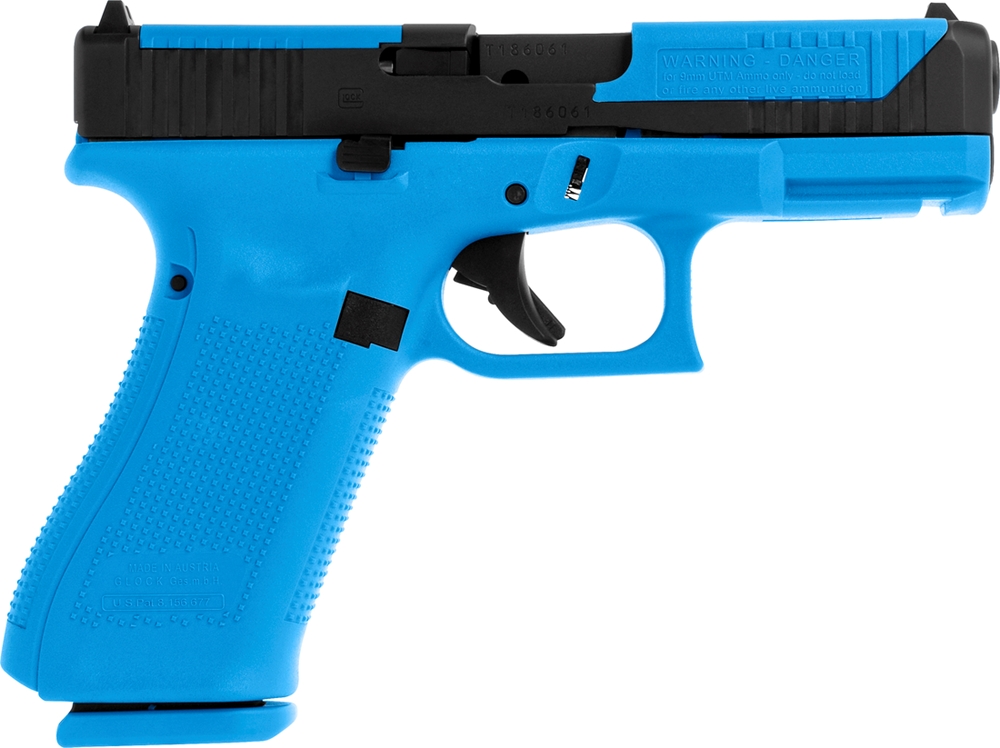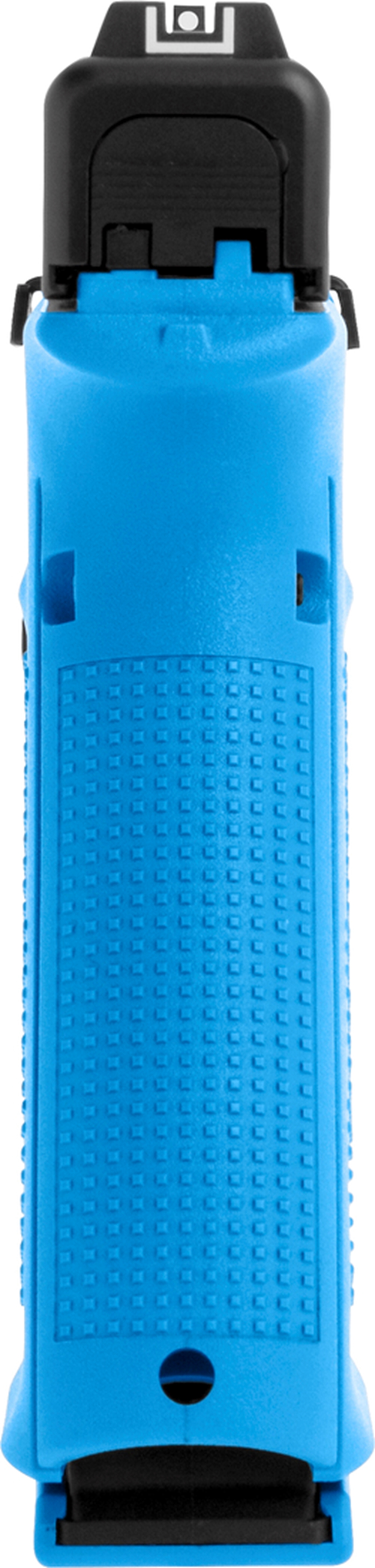 Ce pistolet d'entraînement GLOCK Safe Action® est d'un bleu caractéristique et dispose d'une glissière révolutionnaire avec des inserts en polymère pour le rendre visuellement distinctif et léger. Cette couleur distinctive empêche de confondre le pistolet d'entraînement avec une arme à feu réelle.