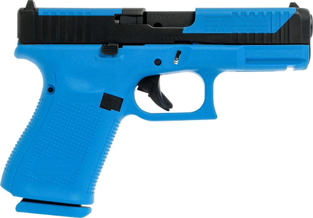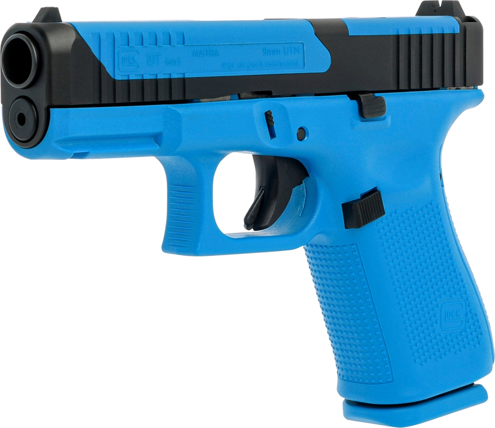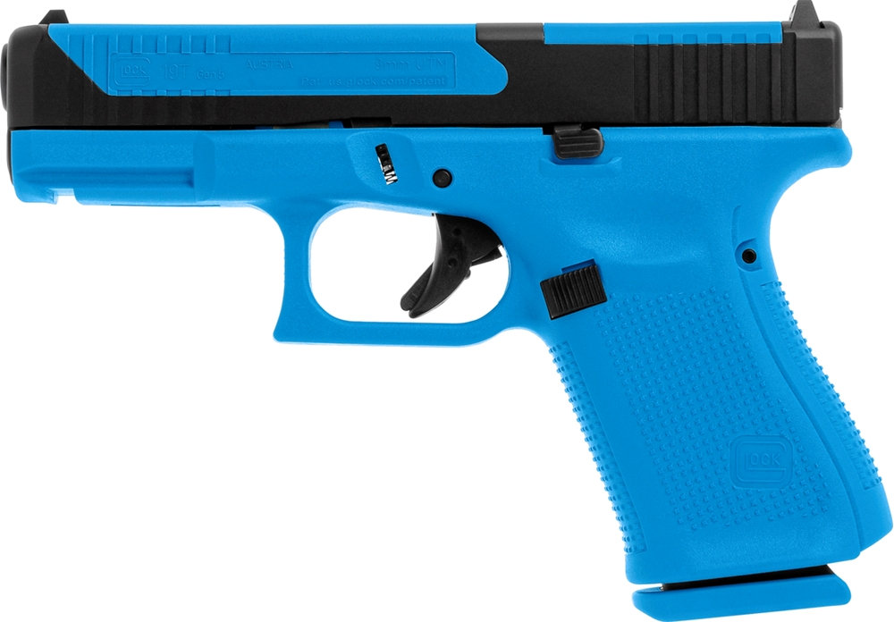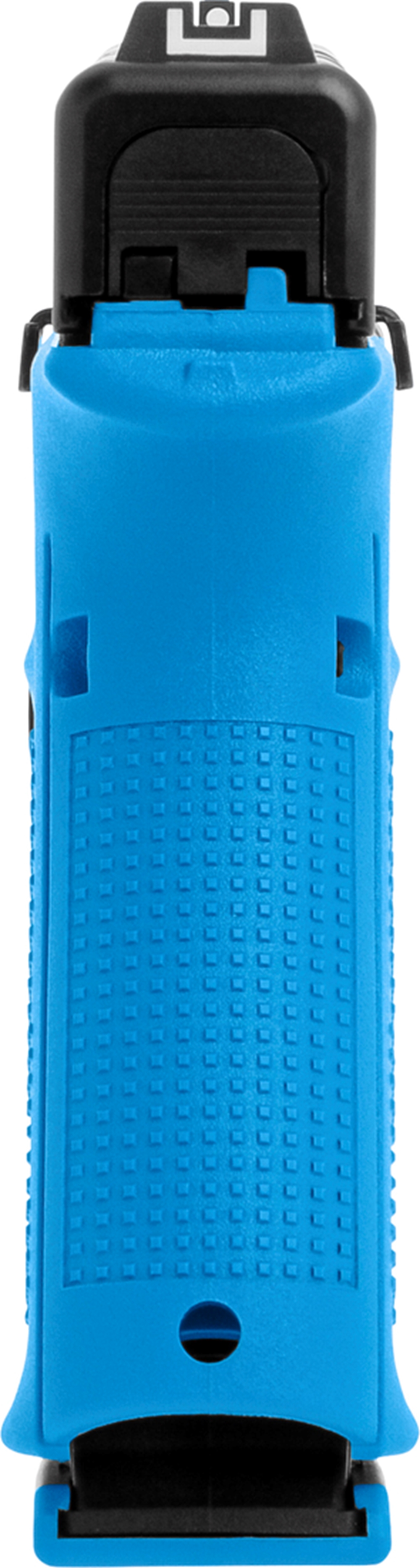 Ce pistolet d'entraînement GLOCK Safe Action® est d'un bleu distinctif et possède une glissière révolutionnaire avec des inserts en polymère pour le faire ressortir visuellement et le rendre léger. Cette couleur distinctive empêche de confondre le pistolet d'entraînement avec une arme tranchante.